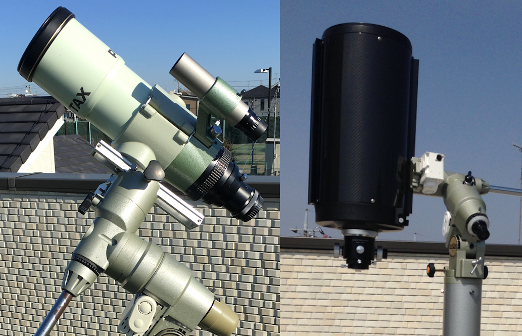 メインで使っている観測機材は、PENTA SD400 10cmF4.0旧型の屈折鏡と20cmF6.0のRC反射鏡になります。 SD400はフィルムカメラ時代から使っていて、屈折系特有の青ハロが強く出ます。 焦点距離400mmの使いやすさとF4にしては画像がシャープなので今も現役です。